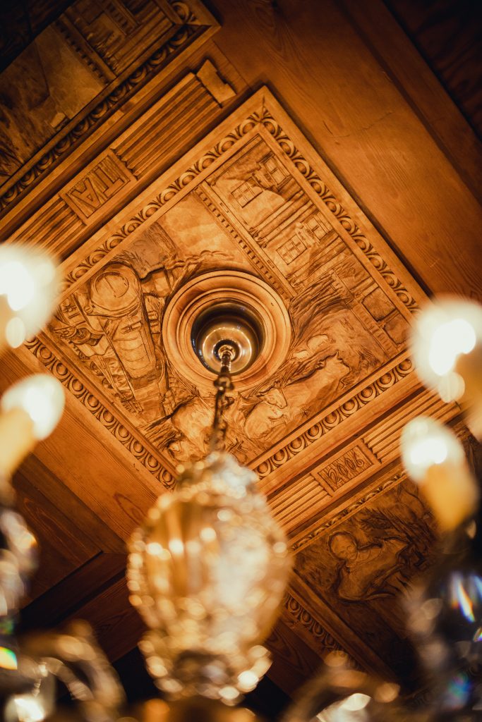 Suunnittelin ja valmistin Tampereella sijaitsevaan rakennukseen kattoreliefin. Tila oli saamassa toisen kattokruunun, joka tarvitsi arvoisensa kattokoristeen vanhan 1916 valmistuneen rinnalle, kuitenkaan kilpailematta vanhan kanssa.